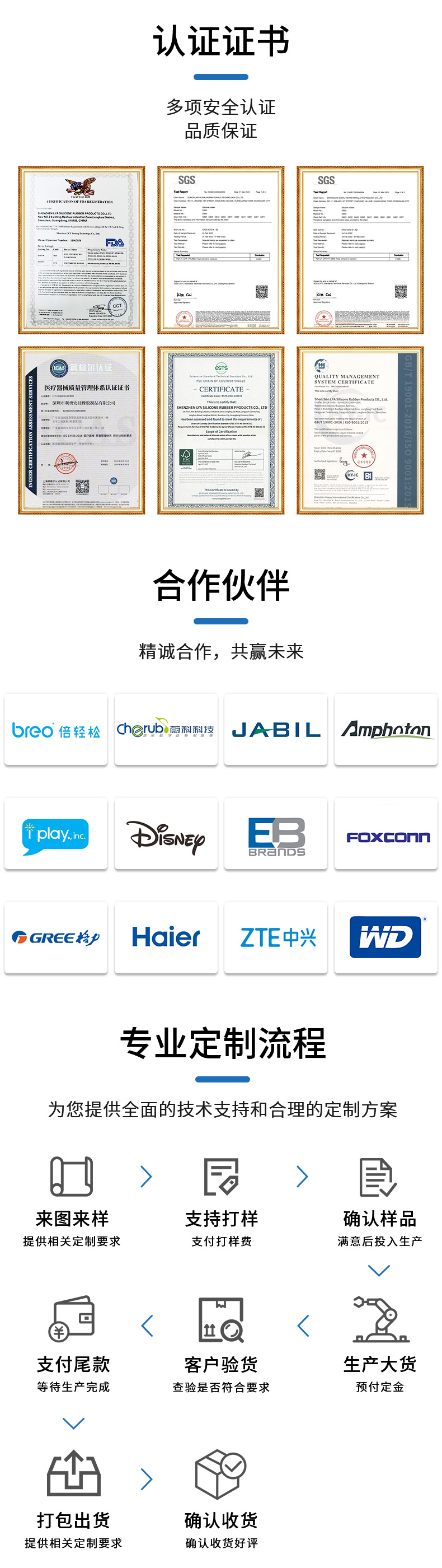 利勇安硅膠始終堅持誠信務實的工作態度,專注技術創新與品質提升 致力于打造高質量硅膠產品,持續深耕汽車、智能穿戴、母嬰用品、3C電子、醫療行業與電子霧化等多個領域。專注液態硅膠制品精密技術研發24年。